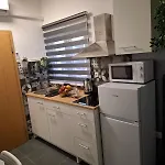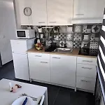 L’alloggio è dotato di un angolo cottura attrezzato, che include un bollitore elettrico, un frigo e utensili da cucina, per garantire la massima comodità.